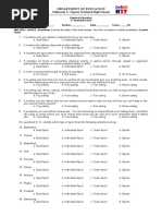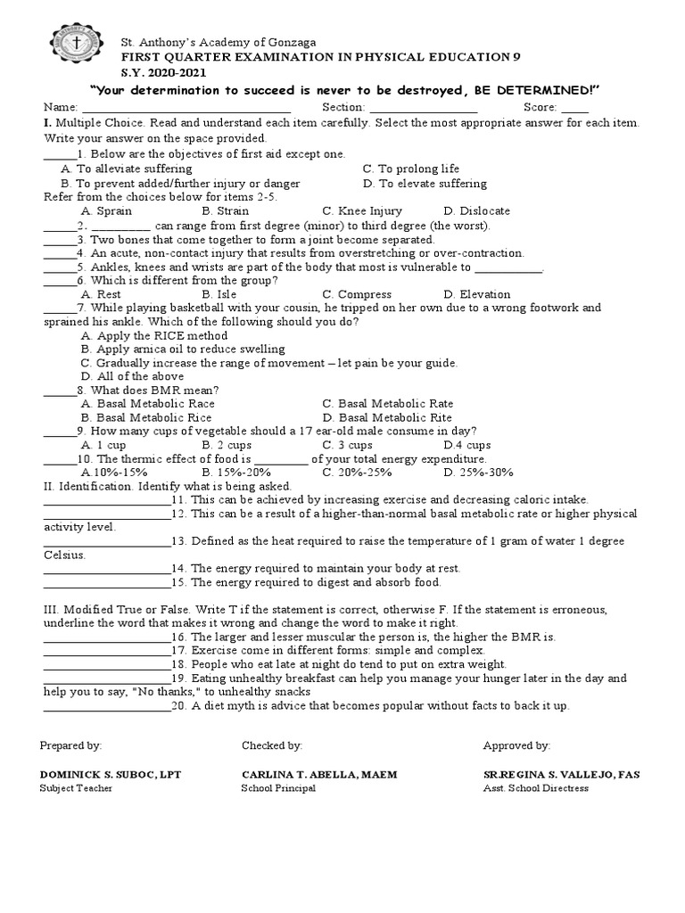FIRST QUARTER EXAMINATION IN PHYSICAL EDUCATION 9