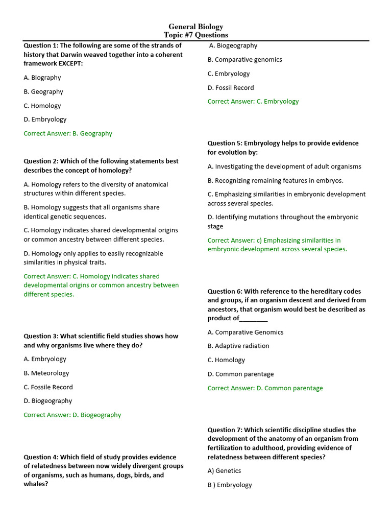 or common ancestry between different species. Correct Answer: c) Emphasizing similarities in